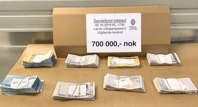 Under gulvmatta i bilen til en tysk mann som skulle ta ferja fra Larvik, fant tollerne 700.000 kroner i en pose. Mannen ville ikke si hvor han fikk pengene fra.