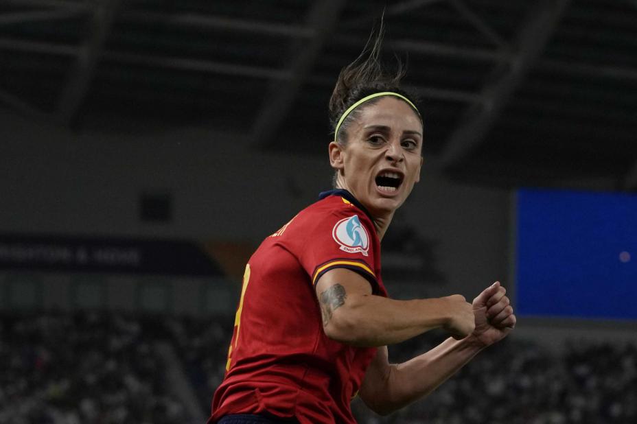 Esther Gonzalez scoret 1-0-målet da Spania og England spilte 1-1 i kvartfinalen i fotball-EM for kvinner onsdag. Foto Alessandra Tarantino / AP / NTB