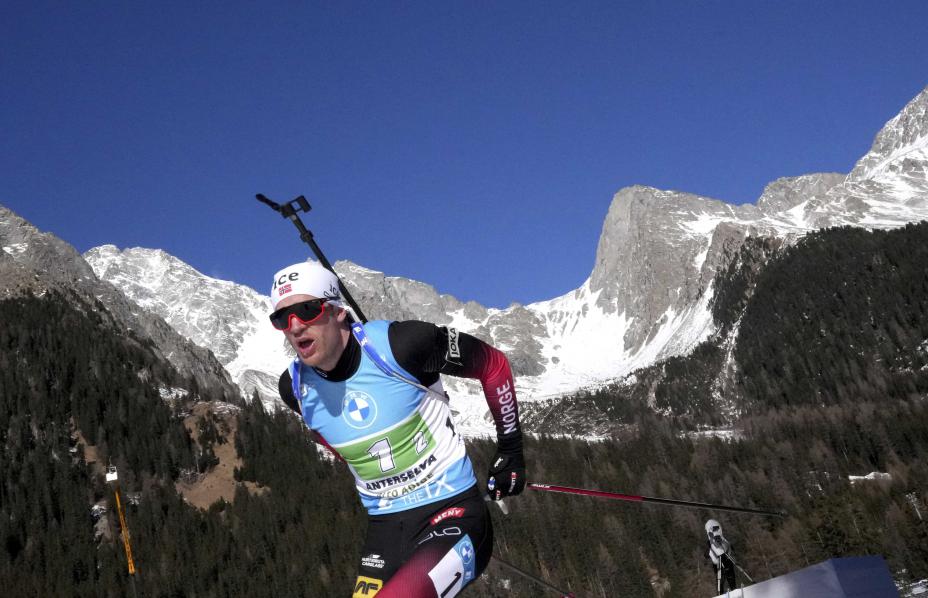 Thingnes Bø har slitt med skytingen sin og med å tilpasse børsa etter å ha hatt problemer med en vond skulder de siste årene. Han har gjort flere justeringer. Søndag kunne han forlate standplass uten en eneste bom.