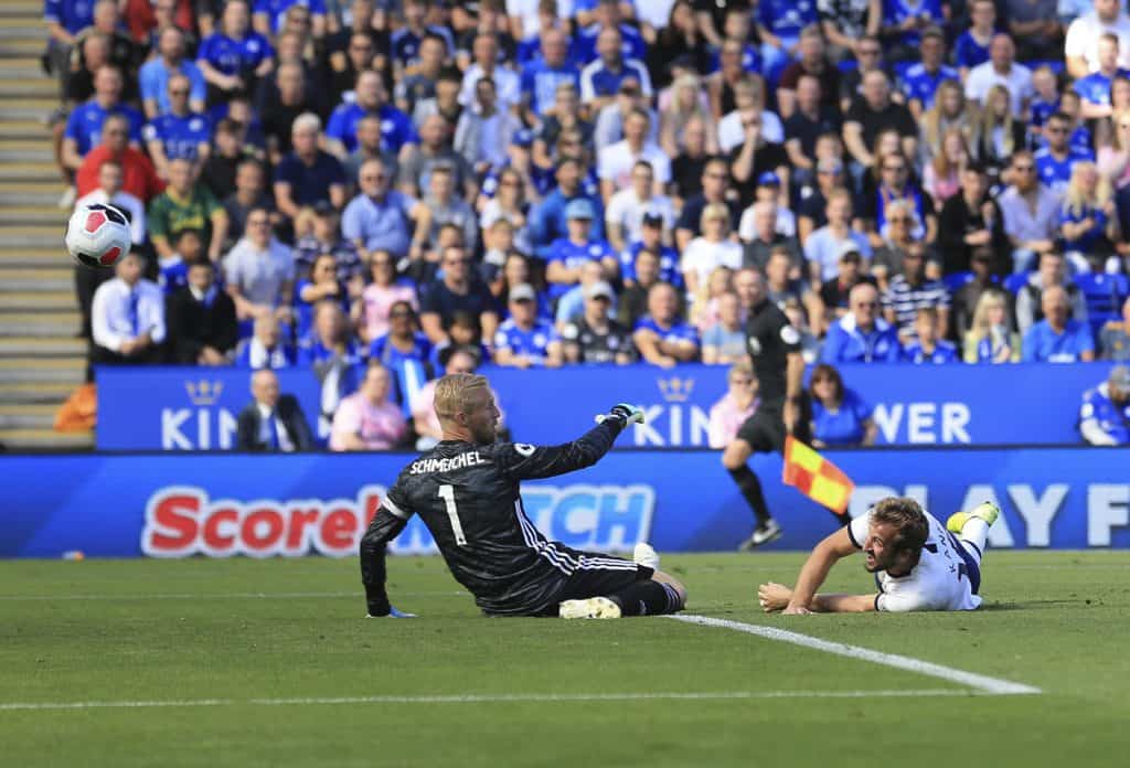 Tottenhams notoriske målscorer tråklet seg gjennom tre forsvarere, mistet balansen og falt i bakken like utenfor femmeteren. Vannrett fikk han slengt ut foten på ball og sendte kula forbi en forfjamset danske, Kasper Schmeichel, i Leicester-målet. Da var det spilt en halvtime i Leicester.