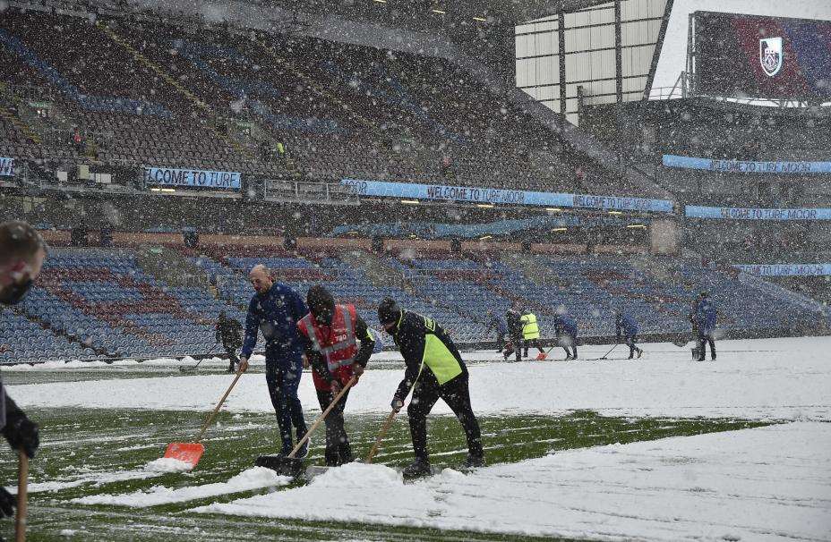 Det ble ikke noe av søndagens Premier League-kamp mellom Burnley og Tottenham. Store snømengder på banen hindret det.