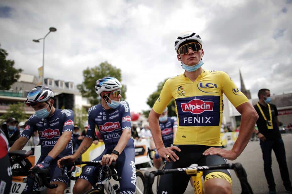 Etter å ha syklet rolig gjennom den innledende nøytrale sonen, stanset rytterne helt opp og sto stille i rundt ett minutt. Sammenlagtleder Mathieu van de Poel og de øvrige trøyebærerne var imidlertid ikke å se i front av feltet.