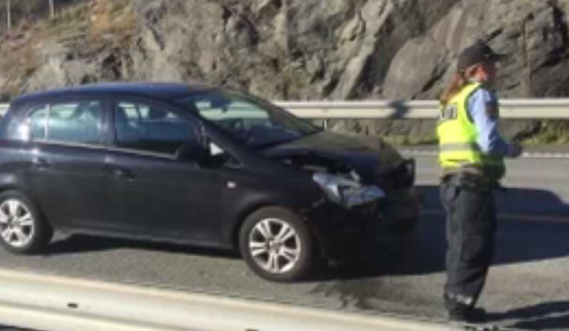 Ulykken skjedde da trafikken stanset opp. En av bilene i køen kjørte inn i bilen foran og skjøv denne videre inn i bilen foran den.