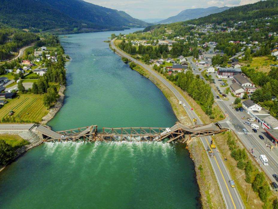 Økonomi og næringsliv: Fagfolk med god kompetanse på bru, anleggsvirksomhet og rivearbeid har tirsdag jobbet med en å planlegge riving av Tretten bru, som mandag kollapset ned i Gudbrandsdalslågen og ned på E6.