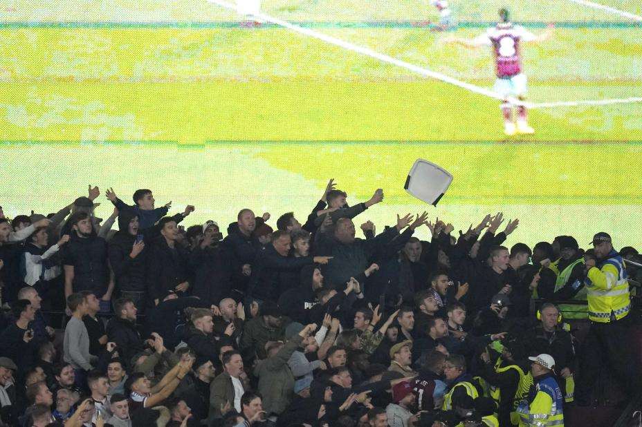 Sport: Store politistyrker rykket inn på London Stadium for å gjenopprette orden etter at Anderlecht-tilhengere kastet bluss og ødela seter på tribunen. En politimann ble observert da han ble hjulpet ut med en skade i armen.
