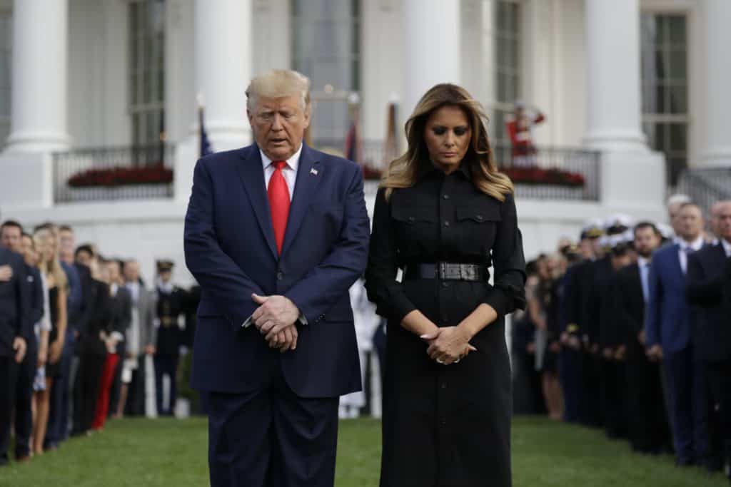 Kriminalitet og rettsvesen: Sammen med sin kone Melania deltok Trump i en markering utenfor Det hvite hus i Washington onsdag. Det amerikanske flagget hang på halv stang mens de frammøtte mintes ofrene for 11. september-angrepene i stillhet.