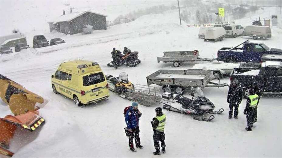 Det er veldig dårlige værforhold, og hjelpemannskapene hadde problemer med å komme inn til stedet. To luftambulansehelikoptre måtte snu på grunn av uværet, og mannskaper måtte fraktes inn på snøscooter, melder avisa.