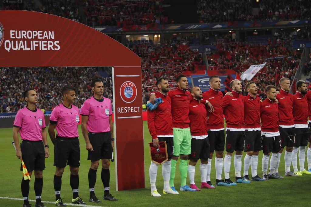 Andorras nasjonalsang, og ikke den albanske, ble spilt før kampstart på Stade de France. I etterkant nektet albanerne å sparke i gang kampen før rett nasjonalsang var spilt.