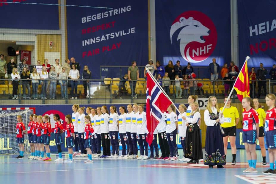 Det norske håndballandslaget for kvinner viste støtte for Ukraina før kampen mot Nord-Makedonia søndag.