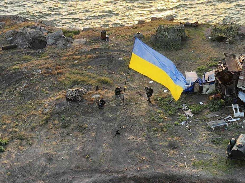 Ukrainske soldater har gjenreist flagget på Slangeøya