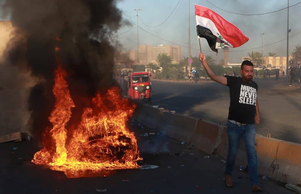 Siden tirsdag har Bagdad og en rekke andre byer i Irak vært preget av voldsomme demonstrasjoner mot regjeringen. Foto: AP / NTB scanpix