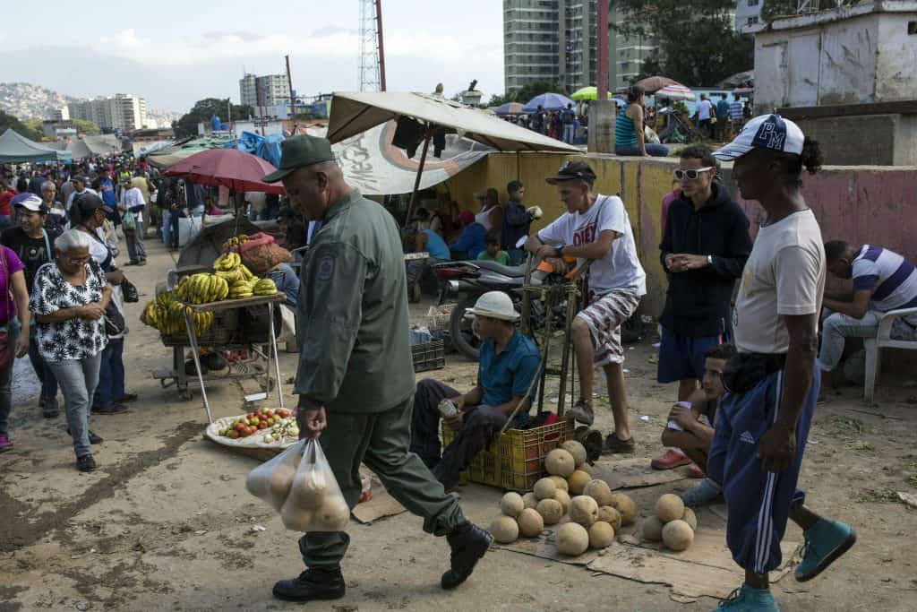 Den sosiale nøden og fattigdommen er stor i Venezuela, der mange mangler mat og medisiner. Bildet er fra et marked i Caracas mandag. Foto: Rodrigo Abd / AP / NTB scanpix