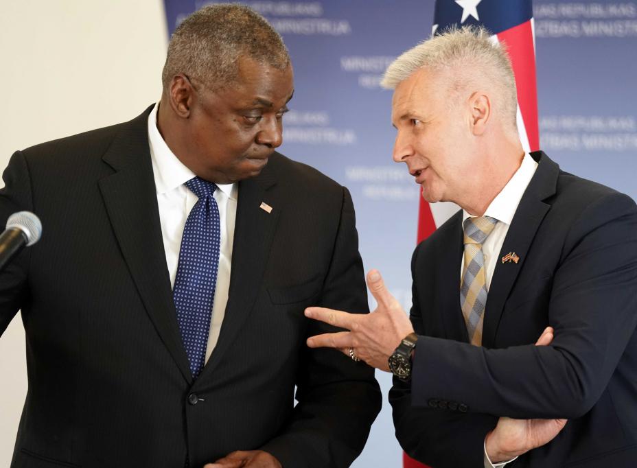 Politikk: USA kan også komme til å sende flere soldater til Baltikum for å møte trusselen fra Russland, sa Austin under en pressekonferanse med Latvias forsvarsminister Artis Pabriks i Riga onsdag.