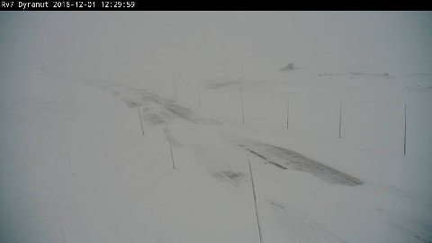 Det er i ettermiddag krevende kjøreforhold over Hardangervidda med sterk vind og tett snødrev.