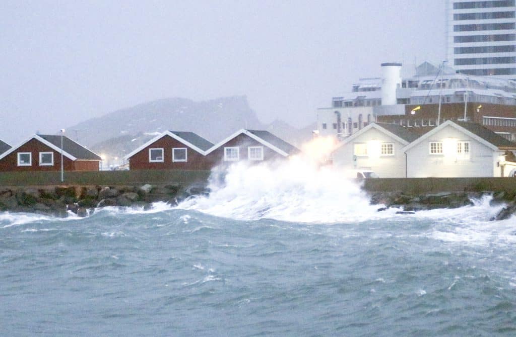 Uværet sørget også for at Hurtigruta MS Finnmarken fikk store problemer med å legge til kai på Ørnes i Meløy kommune, ifølge Avisa Nordland.