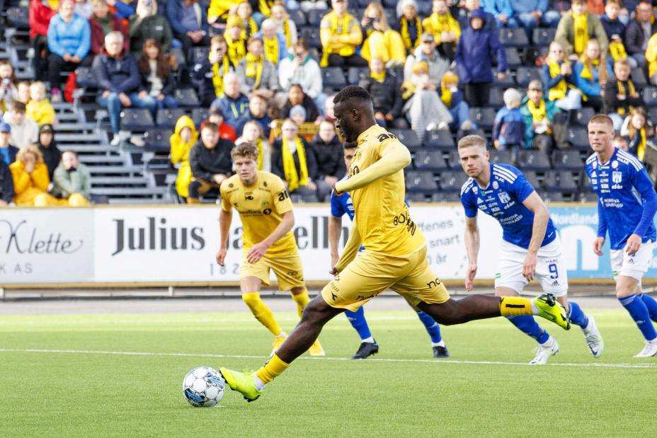 Victor Boniface sikret Bodø/Glimt et godt utgangspunkt i første kvalifiseringsrunde av mesterligaen, men Glimt sliter med å få reise til returoppgjøret på Færøyene. Foto: Svein Ove Ekornesvåg / NTB
