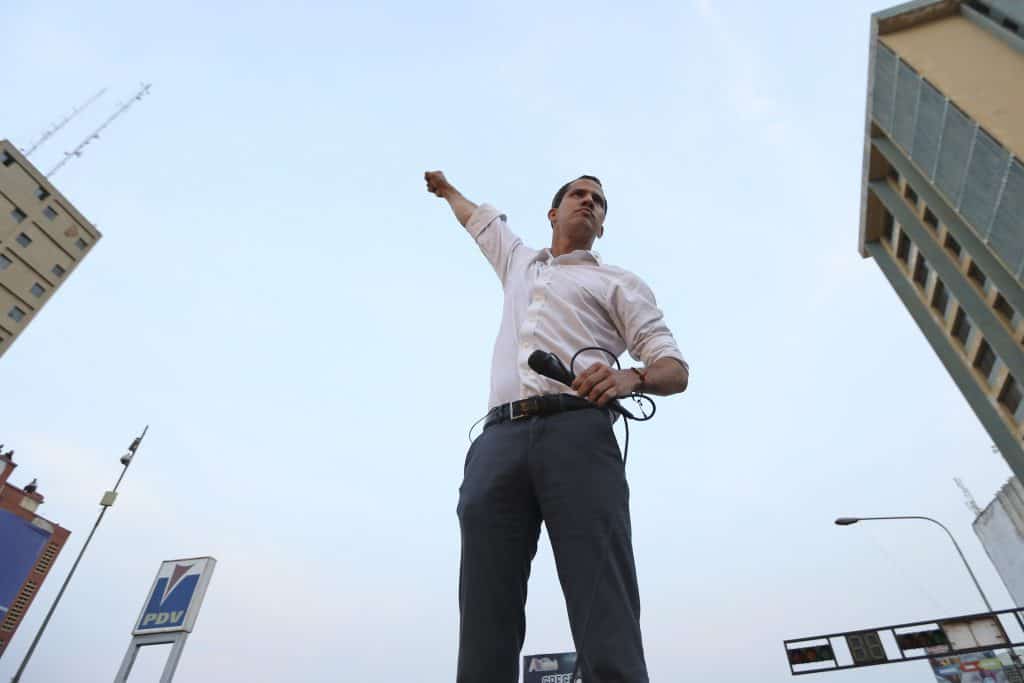 Juan Guaidó er leder for Venezuelas opposisjons-kontrollerte nasjonalforsamling og selverklært president. USA og en lang rekke andre land anerkjenner han som landets rettmessige leder, men det er fortsatt Maduro som har makten i Venezuela.