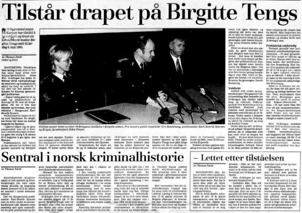 Forsvarerne vil legge fram en avisartikkel fra Stavanger Aftenblad fra 3. mars 1997. Tittelen på artikkelen er «Tilstår drapet på Birgitte Tengs» og omhandler Birgitte Tengs’ fetter og hans tilståelse av drapet den gangen.
