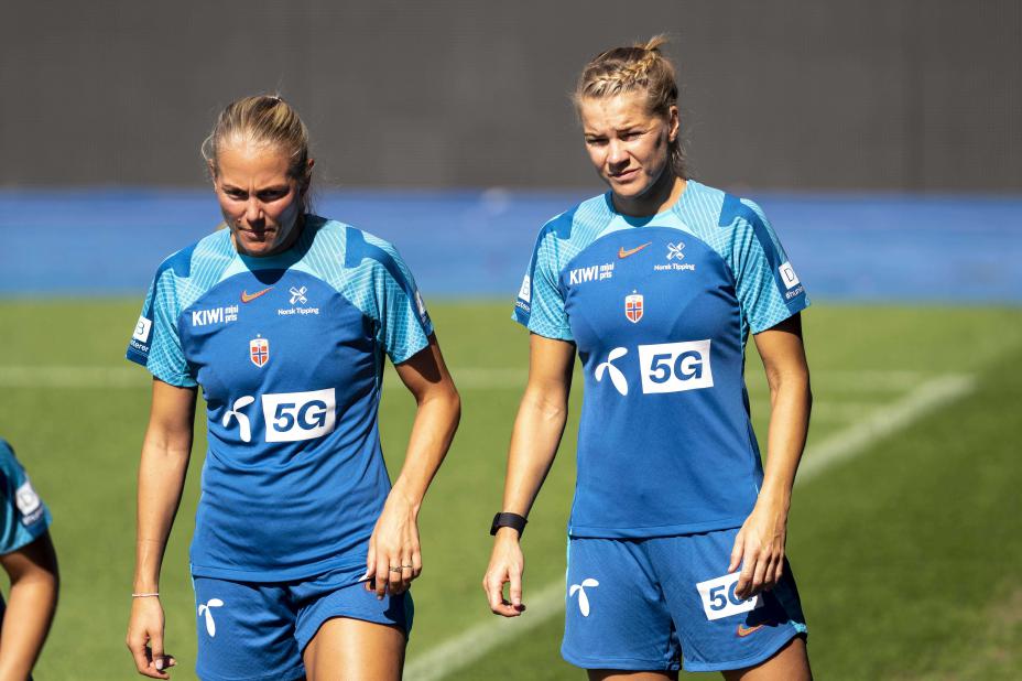 Guro Bergsvand (til venstre) og Ada Hegerberg får lørdag vite hvilke motstandere Norge får i VM neste år. Foto: Terje Pedersen / NTB
