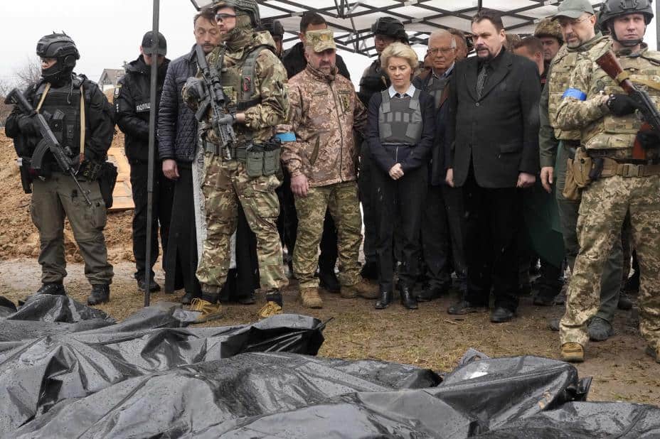 – Hele verden sørger sammen med innbyggerne i Butsja, uttalte von der Leyen under besøket.