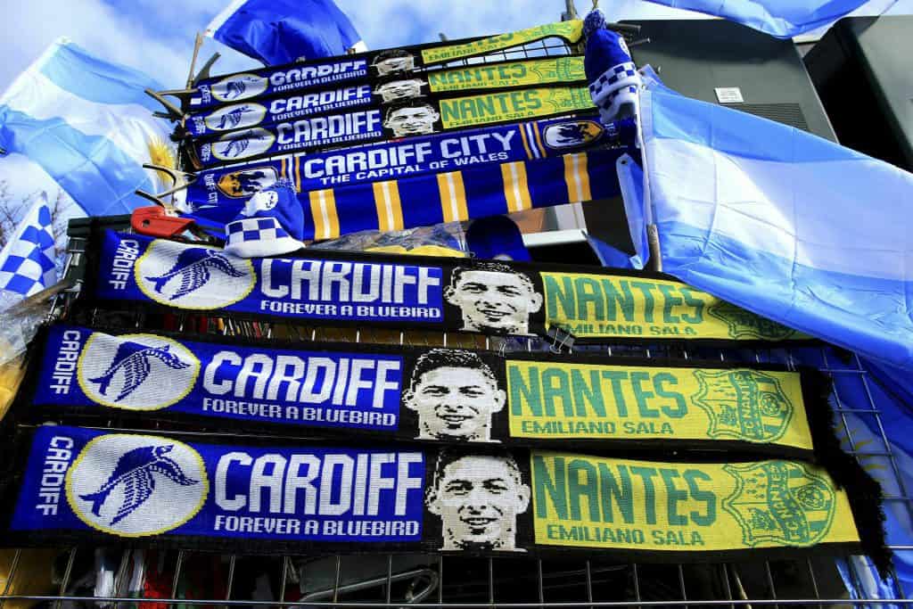 Cardiff som slo Bournemouth 2–0 lørdag hyllet Emiliano Sala på denne måten foran lørdagens kamp. Foto: Mark Kerton/PA via AP / NTB scanpix