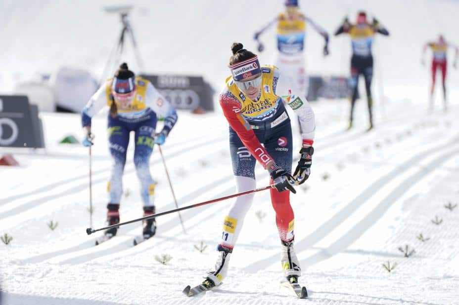 Amerikanske Jessie Diggins hadde en krevende dag. Hun tapte ganske mye og synes å være ute av kampen om sammenlagtseieren.