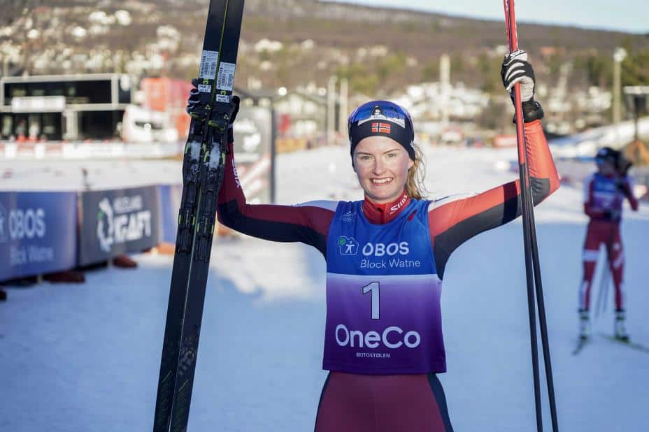 Sport: Den regjerende verdensmesteren hadde 17 sekunder til gode på nærmeste konkurrent ut fra start på de 2,5 kilometerne i langrennsdelen av konkurransen. Det forspranget tok hun godt vare på.