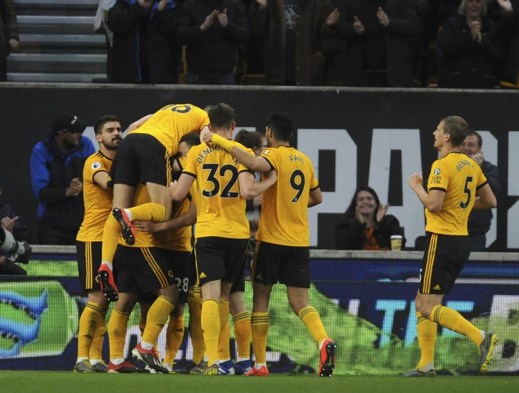 Wolverhampton jubler for scoring mot Arsenal. Kampen endte 3–1. Foto: AP Photo / Rui Vieira / NTB scanpix.