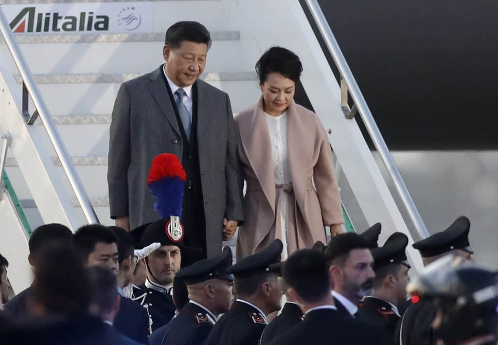 Kinas president Xi Jinping og kona Peng Liyuan fotografert ved ankomst i Roma torsdag. Foto: Andrew Medichini / AP / NTB scanpix