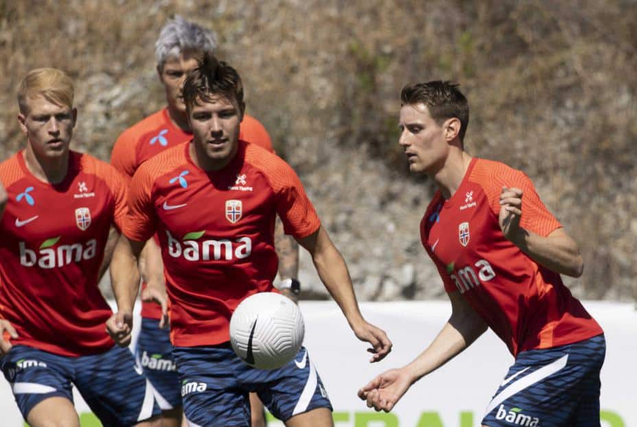 Reserver: 12 Ørjan Nyland, 13 Per Kristian Bråtveit – 6 Fredrik Aursnes, 9 Alexander Sørloth, 14 Julian Ryerson, 15 Jens Petter Hauge, 16 Jonas Svensson, 17 Kristian Thorstvedt, 20 Aron Dønnum, 21 Mathias Normann, 24 Andreas Hanche-Olsen, 25 Fredrik Bjørkan.