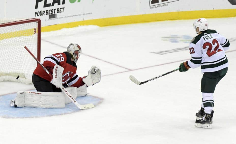 Kevin Fiala satte det første straffeslaget i mål for Wild, etter at Sjarangovitsj bommet for Devils. Wild-målvakt Cam Talbot reddet deretter skuddet fra Jesper Bratt.