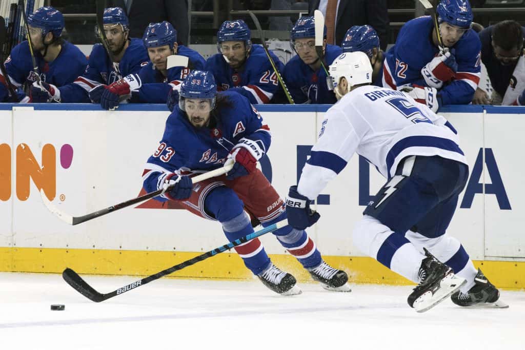Men så dukket en nordmann i storform opp. Mats Zuccarello leverte tre assist i torsdagens kamp mot New Jersey Devils. Mot Lightning noterte han seg for scoring da han mot slutten av andre periode reduserte til 1-3. Scoringen så ut til å gi hjemmelaget ny energi, og kort tid senere scoret Kevin Hayes. På stillingen 2-3 ble kampen amper, og et masseslagsmål brøt ut mellom lagene. Ligthning klarte imidlertid å ro det hele i land.